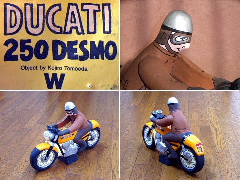 以前にホームページの方で紹介したことのある「張り子」のドカですが、こちらでは初めてだと思います。'89年にドカを手に入れた直後に、あるお店で見つけて購入。もう20年以上前の事になります。全長は40cm以上ありますが、もちろん紙で出来ていますのでとっても軽い。