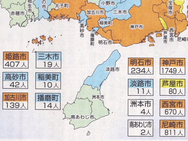 ここしばらく全国的にコロナ感染者が急増、淡路島も毎日10数名の感染者が出ています。淡路島の感染者数は洲本健康保健事務所管内(淡路市・洲本市・南あわじ市の合計)のという発表なのでどちらで発生しているかはわかりません。昨日の新聞にその内訳が載せられていました。