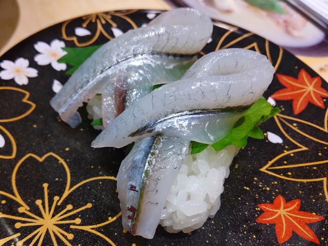 「さより」です。こんな載せ方は初めてみました。こうしてみると思ってたよりさよりって肉厚があるんですね。「さより」を初めて食べたのは確か先輩に北新地のすし店に連れて行ってもらった時。上品で注文するのがかっこいいなと思ったのですが、若いころは淡白すぎておいしさがわかりませんでした。
