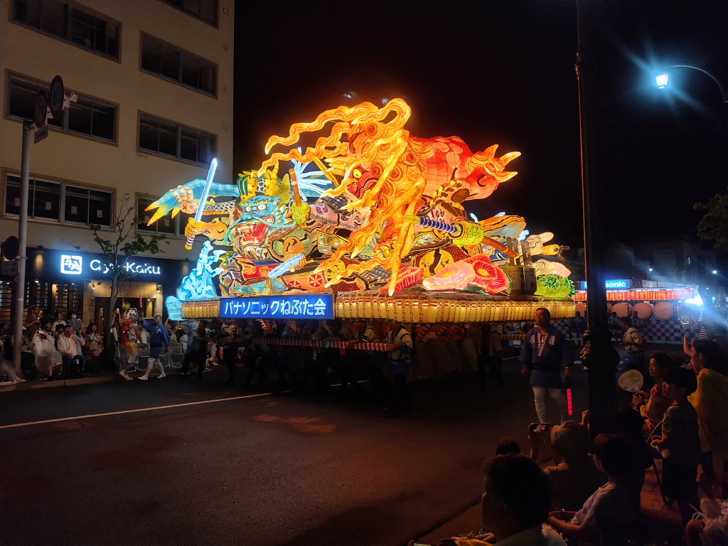 青森空港に到着後、バスで秋田市内まで移動、祭り終了後は岩手の盛岡市内のホテル宿泊というすごい行程なもので、なんとか日付が変わる前にホテルへ到着というハードスケジュール。翌日は再び秋田県に戻り十和田湖周辺のホテルにチェックインのみで、青森市内へ。この日も翌日になる手前ぎりぎりでホテル着というもの。